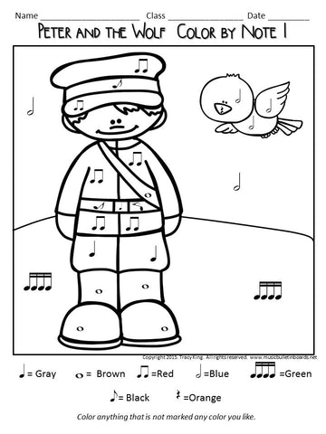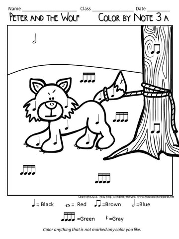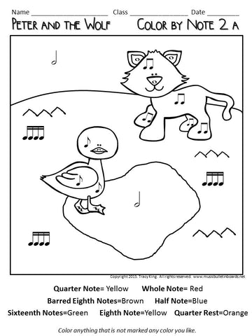 This kit contains 4 designs in two different formats. In the first format students will see the note and then what color to use. In the first format the note matches the notes in the picture. In the second format students will see the note name and then what color to use. The note names indicate notes that can be found in the picture. The first format is best for younger students and the second for older students.
