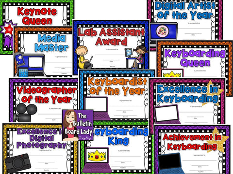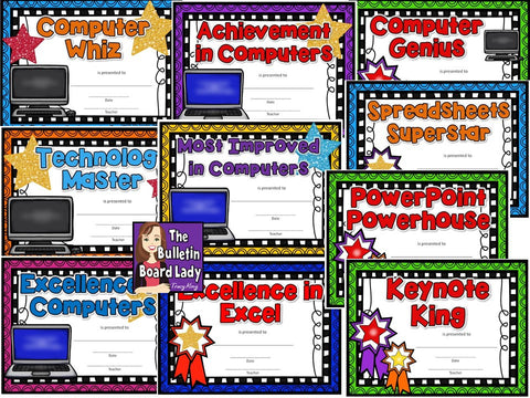 BOLD and Colorful Computer Certificates for End of the Year Awards
