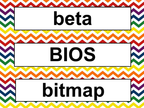 Looking for a word wall for your computer lab or IT room? This huge set includes 147 words and an editable template for you to use to add your own words. The words fit 3 to a landscape oriented full-sheet page.
