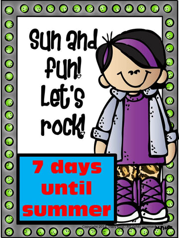 This year rocked! Let's count down to a rockin' summer! This bulletin board kit contains 15 rock star themed pages that count down to a rockin' summer.