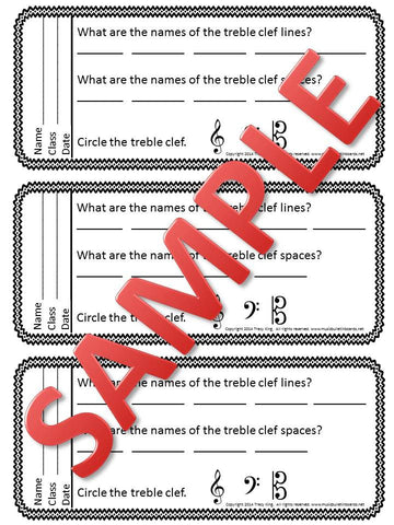 Exit Tickets Formative Assessments for Music Class-TREBLE CLEF PITCHES