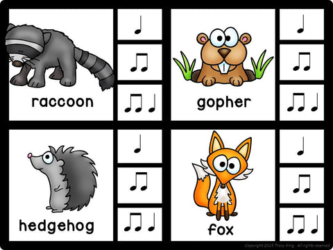 Clip to it! In this clothespin activity students are asked to clip the rhythm that matches the syllables in each animal picture. This activity works great in centers or small groups. Before placing them in a workstation, you should plan a little bit of time to print the cards on cardstock, cut and laminate them for maximum durability.