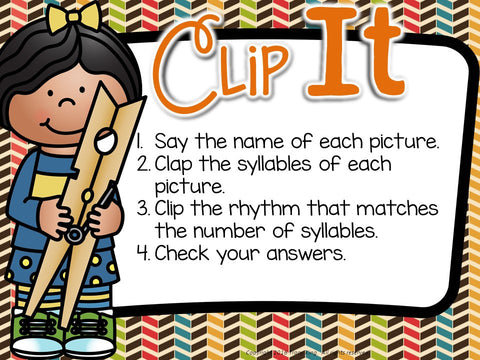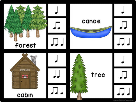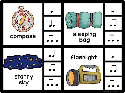Clip to it! In this clothespin activity students are asked to clip the rhythm that matches the syllables in each camping themed picture. This activity works great in centers or small groups. Before placing them in a workstation. You should plan a little bit of time to print the cards on cardstock, cut and laminate them for maximum durability.