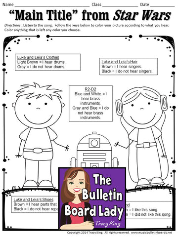 A glyph is a pictorial representation of data. These clever worksheets ask students to color each object or portion of the picture based on what they hear. These glyphs were designed for use with the music of John Williams and ask students to listen for 4-5 things in a piece. Music is NOT included. Some of the concepts covered: loud/soft, fast/slow, lullaby, march, smooth/separated, mood and more!