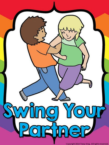 In this activity students will create movements to match the characters and descriptions on the cards. This set includes dances with partners and small groups like Chorus Line Kick, London Bridge, Back to Back and See Saw. Students interpret the pictures and descriptions to come up with their own unique dance. Start the music and hold up one of these cards to see students' imaginations ignite.