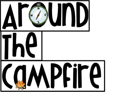 The title reads “Around the campfire in many places, music is made on lines and spaces.”