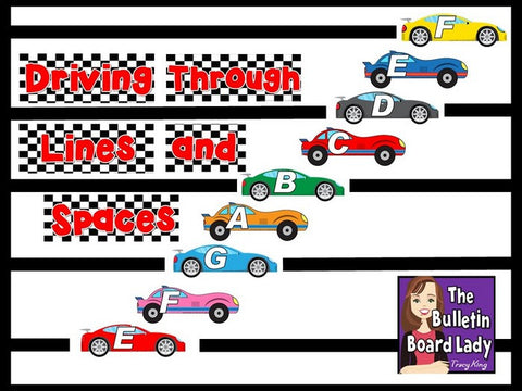 Driving Through Lines and Spaces -Racing Themed Treble Staff Display