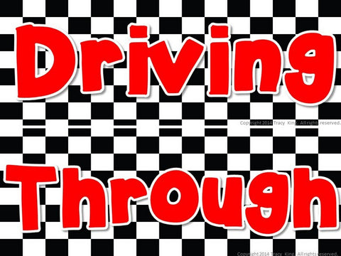 Title words with a checkered flag background are included. They say “Driving Through Lines and Spaces”.