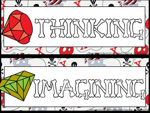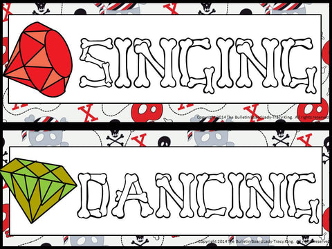 Ahoy matey! This pirate themed bulletin board declares that what happens in music class is a treasure! Included in this kit are 16 words that describe what happens during music class. Some of the included treasures are: singing, dancing, clapping, listening, imagining and composing.