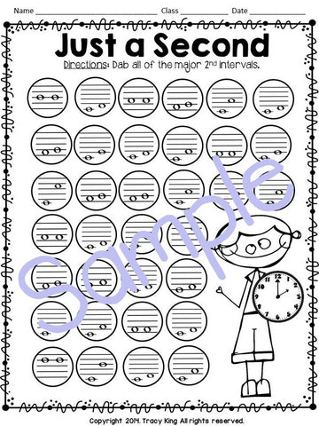 1 worksheet for each of the following interval: unison, seconds, major and minor thirds, fourths, fifths and octaves