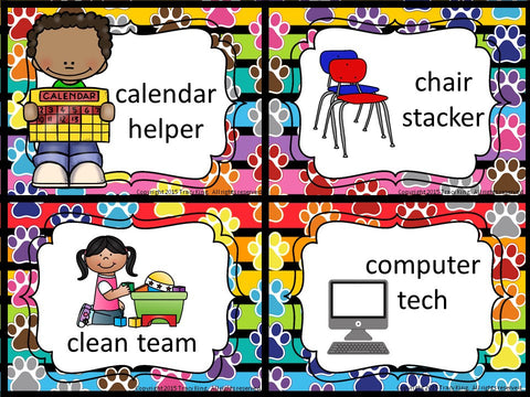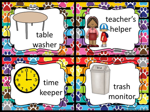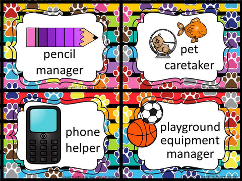 Classroom Jobs - Paw Print Theme
