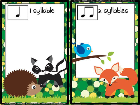 Rap it, Clap it, Music Match it is an activity that challenges students to say the name of the picture on 12 thematic cards, clap it to discover the number of syllables it has and then match it to notes that represent those syllables. Notes included are quarter note and barred eighth notes.