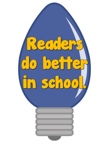 -18 light bulbs with reasons why reading can make you bright. Some statements include “Reading improves vocabulary.” “Reading lets us discover new things.” and “Reading improves concentration.”