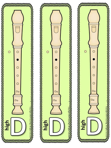 The cards contain the pitch name (not on the staff, just the letter) and the recorder fingering. Each time they play they are reinforcing their knowledge of recorder fingerings.