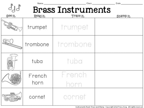 Read It, Trace It, Stamp It – Instruments Edition for Music Class