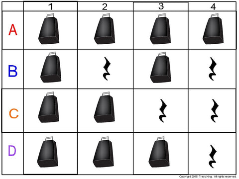 I'm always looking for instrument playing activities that are fun and engaging. Reading simple icons for ta and titi students can play through this entire activity on a cowbell. Designed for students who are just learning to read ta, titi and sh (quarter notes, barred eighth notes and quarter rest), this activity works perfectly as a workstation.
