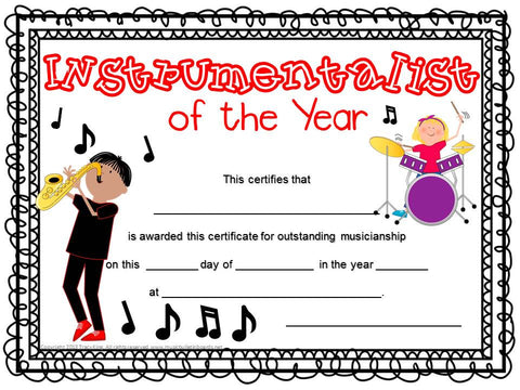 Each of the three designs contains the following certificates for a total of 39 certificates…oops actually 40 certificates as the Instrumentalist of the Year is included in two different colors in the Colorful Kids set.