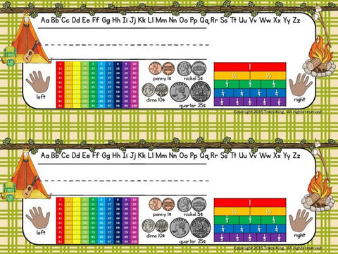Design #3: alphabet, left/right, coins, hundreds chart, fraction chart