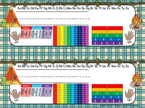 Design #4: alphabet, place value chart, hundreds chart, fraction chart