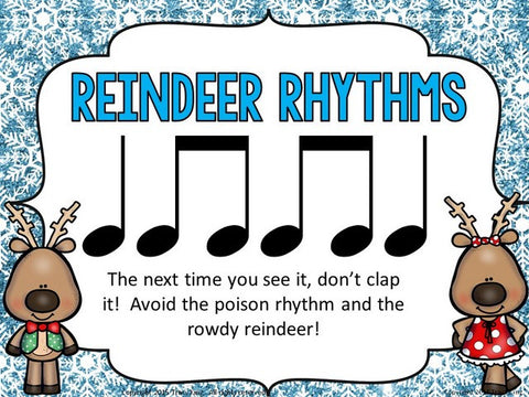 This set is great for December or the week before Christmas break as it features reindeer that try to get students to clap the poison rhythm.