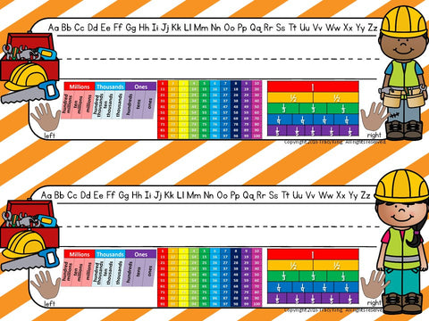 Design #4: alphabet, place value chart, hundreds chart, fraction chart (**UPDATED: Now also included in cursive)